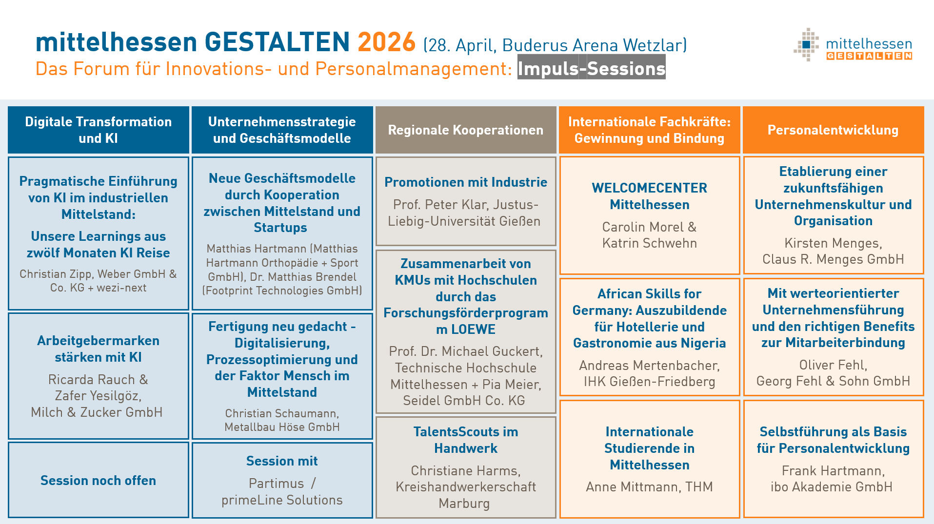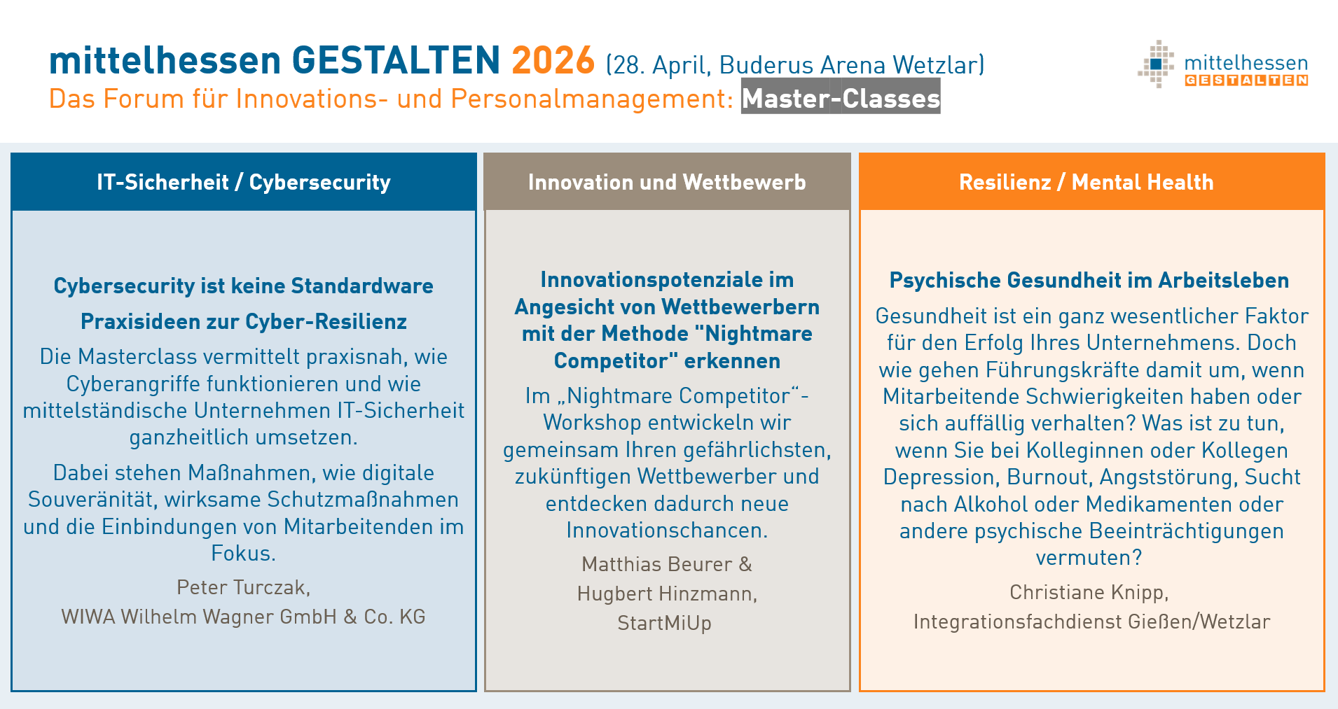 👉 Wie Sie es von den Events des Regionalmanagement Mittelhessen gewohnt sind, gilt auch hier: Keine Kosten, maximaler Mehrwert.