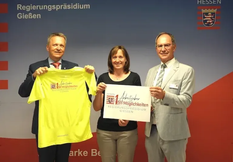 Gießen. „1 Arbeitgeber – 1.000 Möglichkeiten“: Dieser neue Slogan des Regierungspräsidiums Gießen wird den Menschen in Mittelhessen ab sofort immer wieder begegnen. Auf Bannern, in Publikationen, auf Fahrzeugen, auf Werbeartikeln und mehr. „Wir sind eine leistungsstarke Behörde mit vielen Aufgaben und ein sehr attraktiver, familienfreundlicher Arbeitgeber. Das wollen wir mit dem Slogan und dem dazugehörigen Logo deutlich machen“, betont Regierungspräsident Dr. Christoph Ullrich passend zum Tag des öffentlichen Dienstes am 23. Juni.