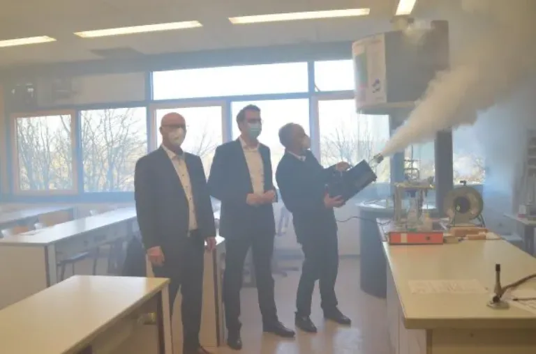 Landkreis Gießen. Ein gekipptes Fenster und ein Abluftventilator, der verbrauchte Raumluft nach außen befördert und gleichzeitig für frischen Sauerstoff im Klassenzimmer sorgt – das Prinzip des von der Technischen Hochschule Mittelhessen (THM) weiterentwickelten Abluftventilatorensystems ist ebenso simpel wie effektiv. Das bestätigt ein Pilotprojekt, das die THM in Kooperation mit dem Landkreis Gießen durchgeführt hat und nun überzeugende Ergebnisse liefert.