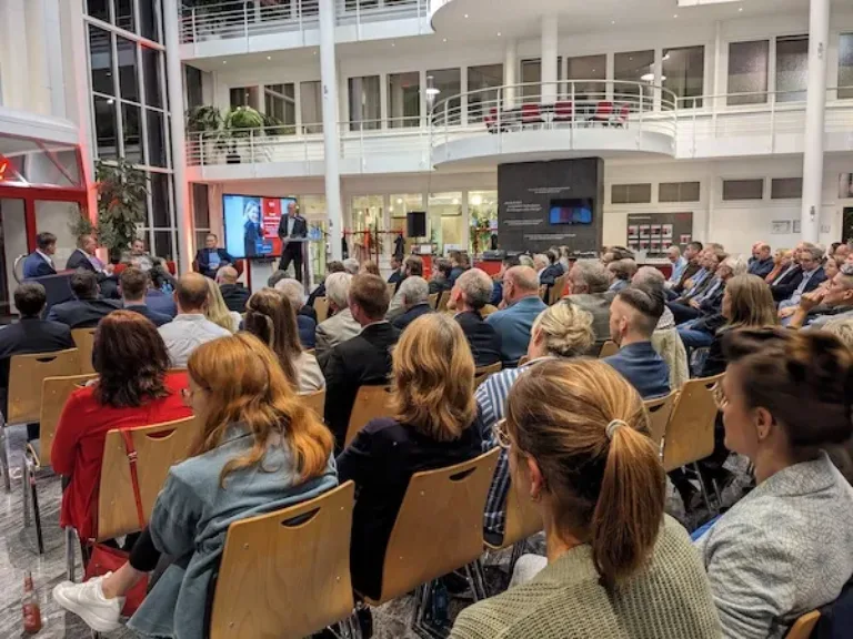 Nach der abschließenden Fragerunde nutzten die Gäste die Gelegenheit zum Austausch und Netzwerken. „Wir freuen uns sehr, dass so viele Menschen gekommen sind, es zeigt, wie groß das Engagement für die duale Ausbildung hier in derRegion ist“, zog Anne-Kathrin Roth eine positive Bilanzdes Abends.