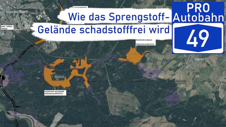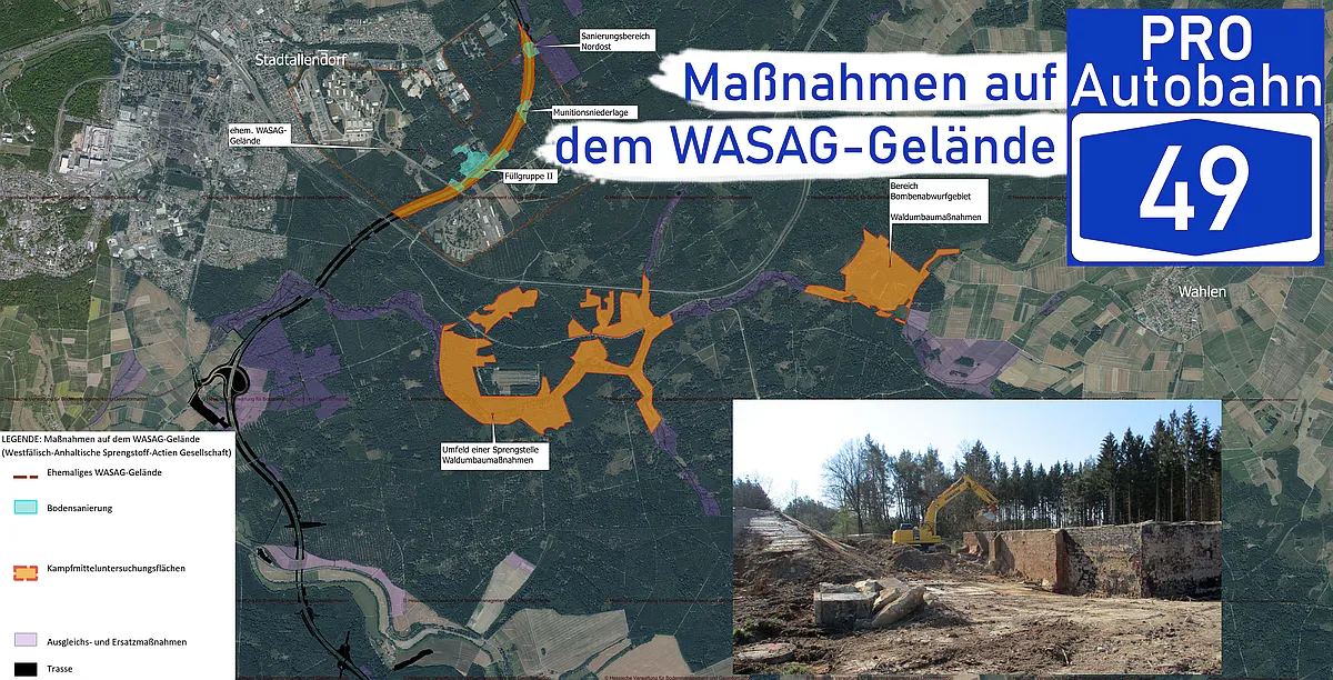 findet dabei nicht nur im Bereich der zukünftigen Autobahntrasse auf dem ehemaligen WASAG-Gelände statt, sondern auch in Gebieten, auf denen Ausgleichs-