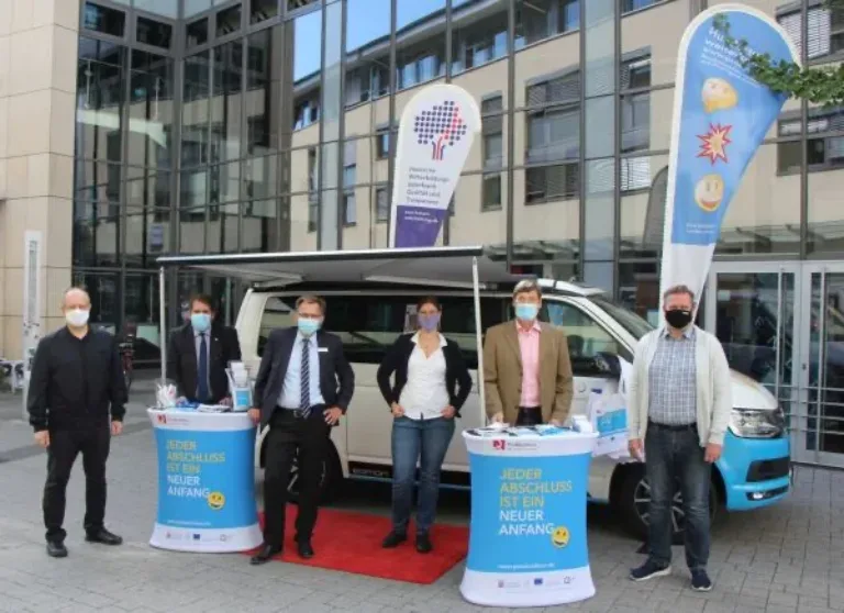 „Ein starkes Argument, jetzt die Nachqualifizierung anzugehen, ist die finanzielle Unterstützung durch den Qualifizierungsscheck, gefördert aus Mitteln des Hessischen Ministeriums für Wirtschaft, Energie, Verkehr und Wohnen und des Europäischen Sozialfonds“, sagt Oliver Amrhein von Weiterbildung Hessen. Der hessische Qualifizierungsscheck übernimmt 50 Prozent der Seminar- und Prüfungskosten. Der Verein bietet in Zusammenarbeit mit dem Bildungscoach außerdem eine mobile Beratung an. An öffentlichen Plätzen wie beispielsweise dem Marburger Cineplex, aber auch direkt bei Unternehmen. Der Qualifizierungscheck kann noch bis Ende 2021 beantragt werden.
