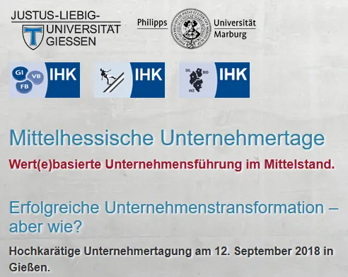 Die Veranstaltungsreihe „Mittelhessische Unternehmertage – Wert(e)basierte Unternehmensführung im Mittelstand“ wird von der