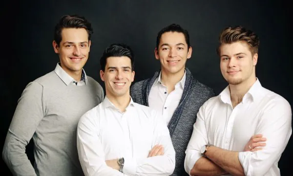 Das PVT PAY-Gründerteam (v.l.): Philipp Kohl, Stefano Bonvissuto, Sven Erb und Yannik Manet. (Quelle: Benjamin Schenk / Fotostudio Hirch)