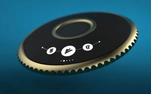 Prototyp des digitalisierten Bargeldes: Mit dem innovativen Hardware-Geldbeutel des Start-ups PVT PAY, dem Pivot, kann man offline und anonym bezahlen. (Quelle: Philipp Kohl)