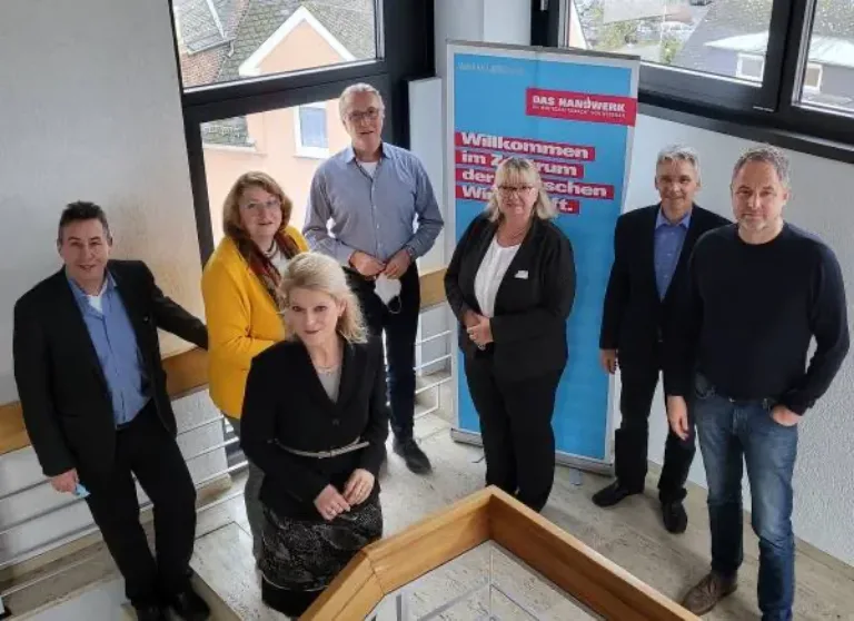 Um Maßnahmen zu besprechen, die dem Schwund in der dualen Ausbildung in der Region Limburg-Weilburg begegnen, trafen sich Laßmann und Sommer, zusammen mit Kreishandwerksmeister Wolfram Uhe und Jutta Golinski von der IHK, mit Schulleiterinnen und Schulleitern von Berufsbildenden Schulen des Landkreises: Dr. Ulla Carina Reitz (Wilhelm-Knapp-Schule), Ralf Abel (Adolf-Reichwein-Schule) und Stefan Laux, (Friedrich-Dessauer-Schule). Einig waren sich die Vertreter aus Schule und Wirtschaft, dass die Herausforderungen für die duale Ausbildung in der Region nur gemeinsam bewältigt werden können.
