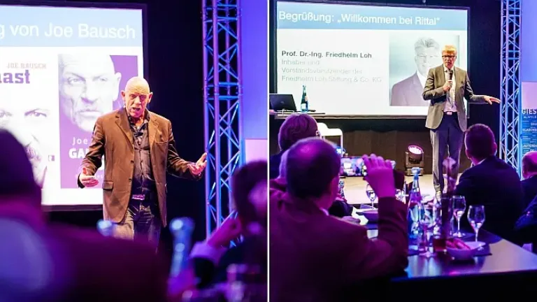 Prof. Loh schilderte, wie sich das Unternehmen seit der Gründung 1961 zu heutigem Weltruf entwickelt hat – durch Offenheit und großes Interesse an immer neuen Zukunftsideen sowie Mut und Beharrlichkeit bei ihrer Umsetzung. Entscheidend war dabei die Unterstützung der Mitarbeiter mit ihrer Bereitschaft, neue Ideen mit zu entwickeln und anzunehmen, ihr Know-how beständig zu erweitern und gleichzeitig loyal und mit typisch mittelhessischer Standhaftigkeit auch steinige Wege mitzugehen. Das gelte ebenso für die Vertreter öffentlicher Interessen aus den regionalen Verwaltungen. Mit Blick auf den bedeutenden Innovationsschritt durch das neue Werk in Haiger und die größte Investition der Unternehmensgeschichte erläuterte Prof. Loh: „Wir sind überzeugt, gemeinsam mit den Menschen, mit denen wir hier in der Region groß geworden sind, mutig in die Zukunft zu gehen.“ Dazu gehöre es auch, die Mitarbeiter mit umfassender Weiterbildung fit für Neues zu machen. Die Region sorge, beispielsweise mit praxisnaher Ausbildung im StudiumPlus, für den wichtigen Fachkräfte-Nachwuchs. „Rittal und die gesamte Friedhelm Loh Group stehen stellvertretend und als Vorbild für die Bildungs- und Wirtschaftsregion Mittelhessen, auf die wir sehr stolz sein können“, sagte Regierungspräsident Dr. Christoph Ullrich, Vorsitzender des Vereins Mittelhessen e.V.