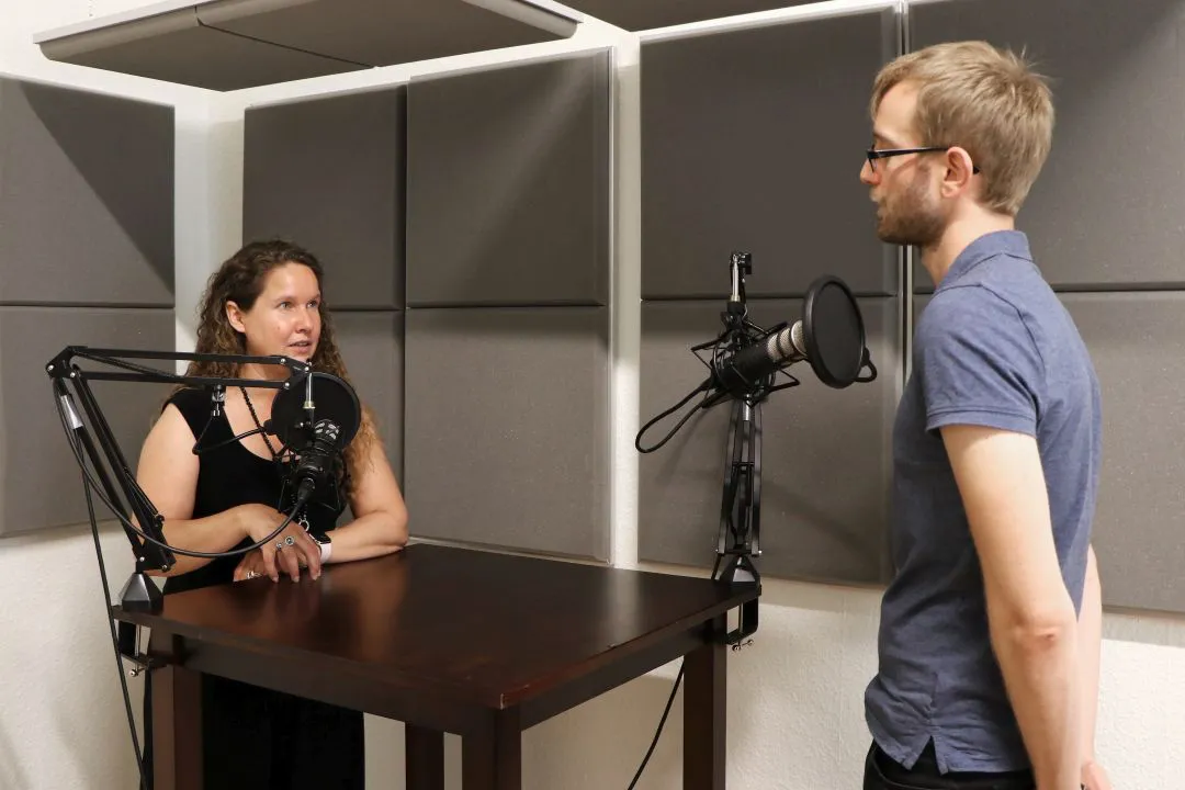 Was macht erfolgreiche Personalführung aus und welche Chancen oder Risiken birgt sie? Pia Meier (l.) im Gespräch mit Benjamin Stuchly. (Foto: transQuer GmbH)