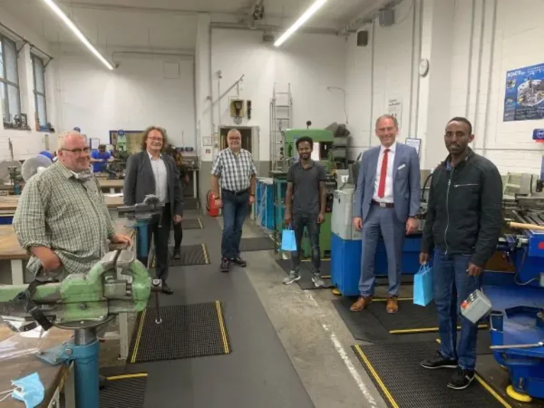 „Ihr Beispiel zeigt, dass Integration hier in Deutschland mit Fleiß und Einsatzbereitschaft gelingt. Unser Land bietet alle Möglichkeiten, man muss sie nur nutzen“, so Landrat Köberle in der Metallwerkstatt der GAB in Limburg. Ermöglicht wurde diese Ausbildung durch die Förderung aus Mitteln des Hessischen Ministeriums für Soziales und Integration über das Sozialbudget des Landes Hessen. Auch 2020 wird die kreiseigene Gesellschaft GAB wieder Berufseinstiegsqualifizierung mit Sprachförderung und Ausbildungsplätze in all ihren Bereichen, teilweise mit Finanzierung durch das Jobcenter Limburg-Weilburg, anbieten. Aktuell finden die Ausbildungsvorbereitungsmaßnahmen statt.