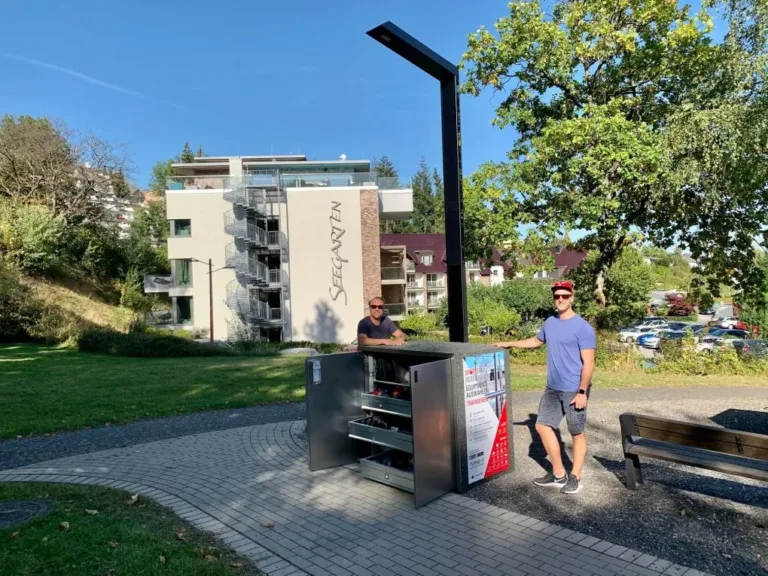 Die Investitionsgelder steckt das Team im Jahr 2020 in die Weiterentwicklung der App und des Produktes, weg von einer Box aus Metall, die damals noch im Boden verankert werden muss, hin zu der Box, die sie heute ist.