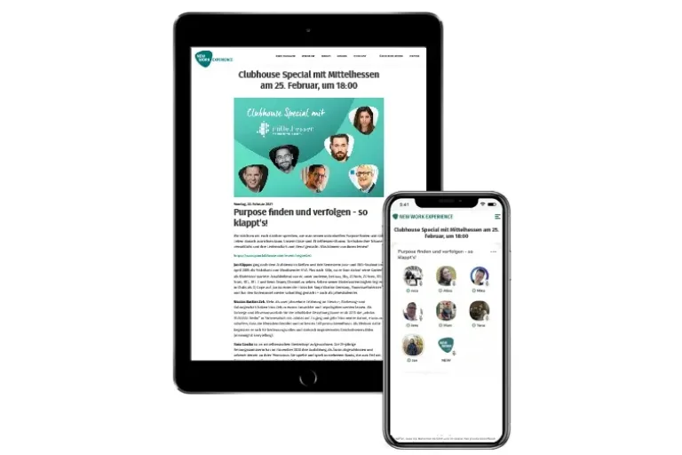 Der individuelle "Purpose" war das Thema im letzten Livetalk von NWXnow, der Plattform für die gesellschaftspolitische Debatte zum Thema Neues Arbeiten (New Work). Was also ist mein "Zweck, Ziel, Aufgabe, Bestimmung"? Darüber sprachen am 25. Februar 2021 um 18 Uhr die Mittelhessinnen und Mittelhessen Jan Köppen, Moderator und DJ, Nicolas Bastian Zeh, Entwickler und Impulsgeber und Yana Gercke, Ärztin, Musikerin und Mittelhessen-Botschafterin. Moderiert wurde die Runde von den Journalisten Mika Beuster (VRM Mittelhessen, DJV) und Marc Schäfer (Gießener Allgemeine) zusammen mit dem Regionalmanagement-Geschäftsführer Jens Ihle. Erstmalig wurde für den Austausch die App "Clubhouse" verwendet, bei der jeder mit der App ohne Anmeldung zuhören und sich beteiligen kann.