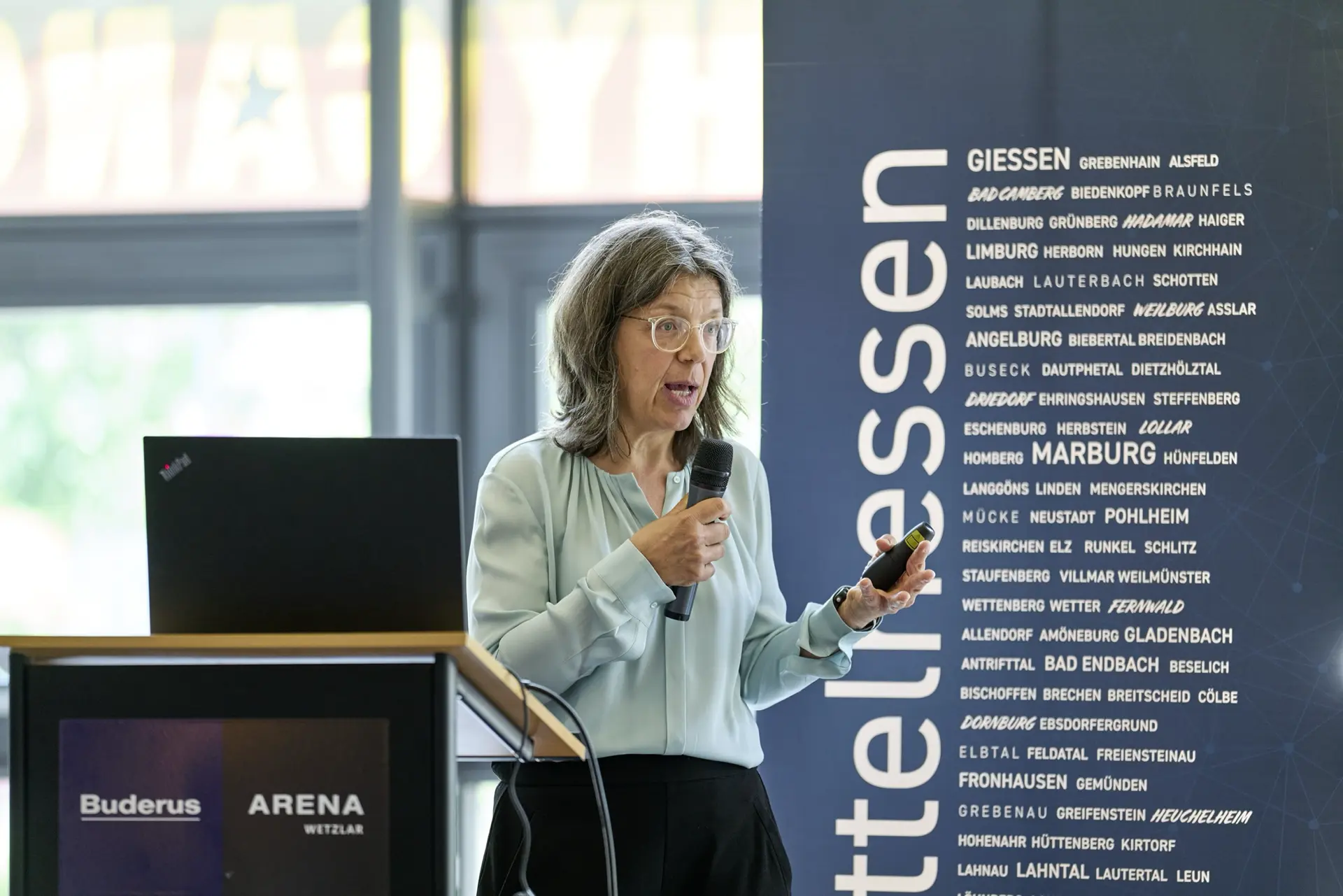 Nach der offiziellen Eröffnung gab Dr. Carola Burkert vom Institut für Arbeitsmarkt- und Berufsforschung (IAB) in ihrer Keynote einen fundierten Überblick: „Der Arbeitsmarkt in Mittelhessen ist gut aufgestellt.“ 25 Prozent der Mittelhessen arbeiten im verarbeitenden Gewerbe. 56.000 Menschen arbeiten auf der Fachkraftebene. Das ist das Rückgrat Mittelhessens. Jeder vierte Mittelhesse arbeitet als Experte in einer hochqualifizierten Tätigkeit.