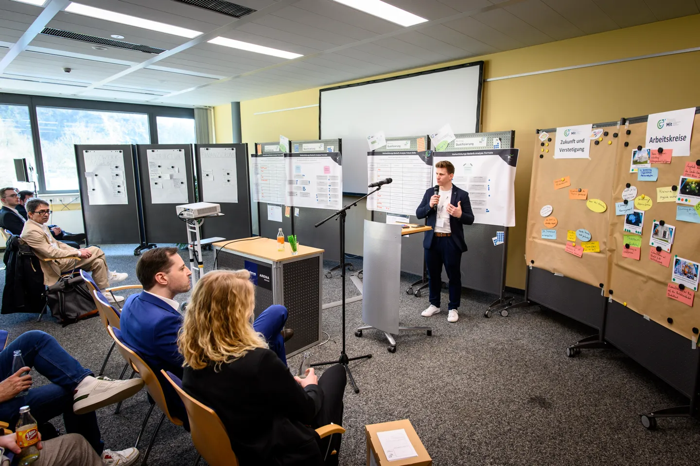 Konzentrierte Workshops zu TransformationIm zweiten Teil der Veranstaltungen gab es drei Workshops, die sich mit den Schwerpunktthemen Technologie, Qualifizierung und Netzwerkstruktur beschäftigten. Hier konnten die Teilnehmenden ihre Erfahrungen mit TeamMit reflektieren, neue Impulse geben und gemeinsame Ziele für die Zukunft formulieren. Die Ergebnisse warfen ein erfreuliches Bild auf die Arbeit von TeamMit. Dabei sind neben vielen Details insbesondere zwei Aspekte festzuhalten: Auf der einen Seite wurde der klare Wunsch formuliert, die Arbeit von TeamMit zu vertiefen und zu intensivieren. Auf der anderen Seite herrschte große Einigkeit darüber, dass es wichtig sei, eine dauerhafte Struktur für das Transformationsnetzwerk zu etablieren und die dafür notwendige Finanzierung zu sichern. Die Vertreterinnen und Vertreter der Unternehmen betonten, dass es wichtig sei, die Transformation mit einem Unterstützungsangebot zu begleiten, wie es mit TeamMit bereits verankert sei. „Nicht alle müssen bei den konkreten Projekten mitmachen, aber alle sollten die Chance haben von den Erkenntnissen zu profitieren“ brachte es ein Vertreter auf den Punkt.