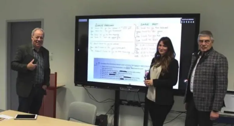 Mit den White Boards der ersten Generation sind sie nicht mehr zu vergleichen. Auf denen mussten die Tafelbilder zum Beispiel noch mit Hilfe von Beamern präsentiert werden. Jetzt kann man sich direkt auf den Monitor einwählen – vom PC aus, vom Ipad oder auch vom Handy. „Heftführung oder Tafelbild – die lassen sich auf dem Ipad schreiben und direkt auf dem Board anzeigen“, stellt Andrea Noeske heraus. „Einwählen kann man sich überall, das erleichtert vor allem auch das Homeschooling.“