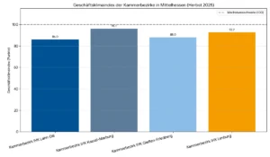 Die aktuelle wirtschaftliche Stimmungslage in der Region Mittelhessen präsentiert sich im Herbst 2025 als herausfordernd und ist von einer spürbaren Zurückhaltung geprägt. Ein Blick auf die Konjunkturindizes der Industrie- und Handelskammern in unserem Gebiet verdeutlicht, dass der erhoffte Aufschwung bislang ausbleibt. Im Bezirk der IHK Gießen-Friedberg fiel der Klimaindex auf 88 Punkte und liegt damit deutlich unter der Wachstumsschwelle. Auch an Lahn und Dill setzt sich der Zick-Zack-Kurs fort, wobei der Index auf 86 Punkte gesunken ist. In der Region Limburg trübte sich die Stimmung nach einer kurzen Erholungsphase erneut ein, was sich in einem Rückgang auf 92,7 Punkte widerspiegelt. Ähnlich verhält es sich im Bereich der IHK Kassel-Marburg, wo der Index bei 96,1 Punkten stagniert und die 100-Punkte-Marke weiterhin unterschreitet. Diese Zahlen verdeutlichen den Ernst der Lage, da Werte unter 100 Punkten auf eine negative Gesamtstimmung oder ein ungünstiges Geschäftsklima hinweisen.