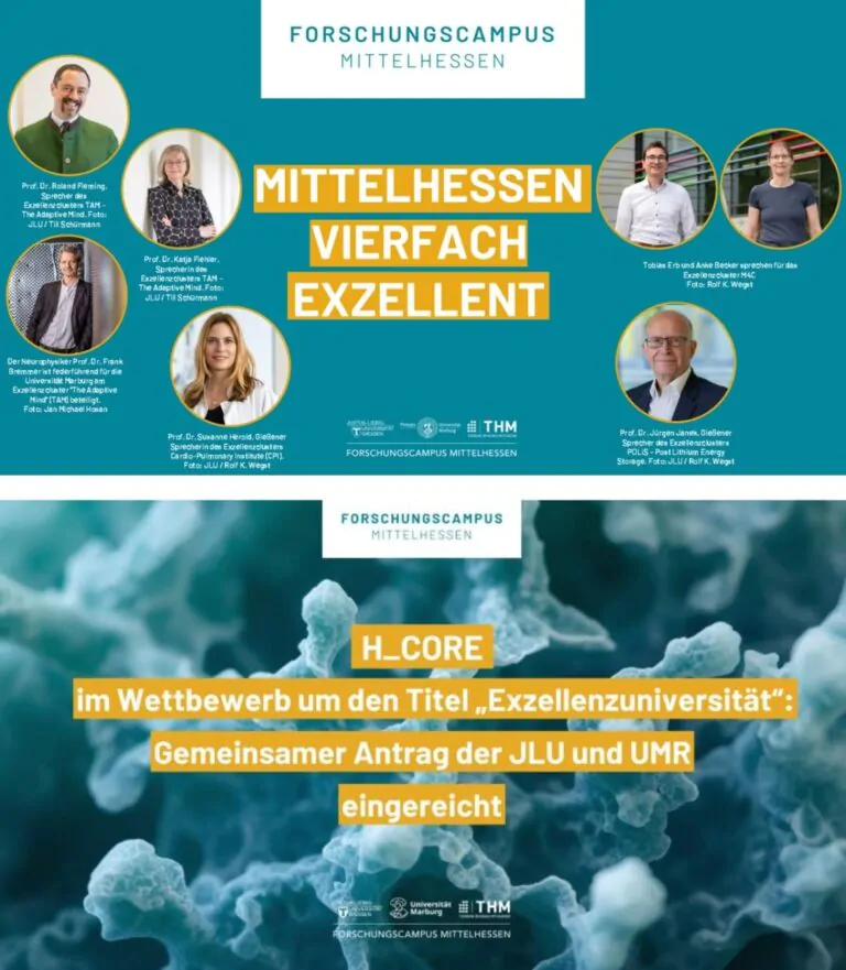Zudem gehen die beiden großen Universitäten gemeinsam den nächsten Schritt: Die Justus-Liebig-Universität Gießen und die Philipps-Universität Marburg bewerben sich gemeinsam mit dem Verbundprojekt „H_CORE – Hessian Collaboration for Research Excellence“ um den Titel „Exzellenzuniversität“. Mit ihrem Verbundantrag als potenzielle Exzellenzuniversität wollen sie die internationale Sichtbarkeit Mittelhessens weiter steigern. Mit verstärkter Förderung, noch tieferer Zusammenarbeit und langfristigem Engagement in Spitzenforschung.